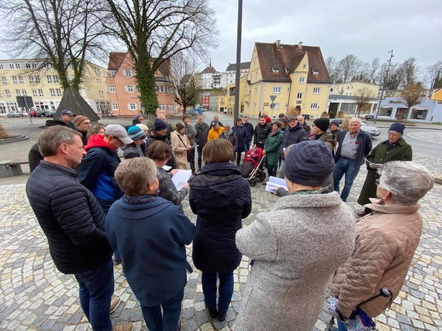 Zahlreiche Wasserburger haben sich am Altstadtbahnhof zum informativen Stadtspaziergang des Bürgerforums am Sonntagnachmittag versammelt. Insgesamt 55 Teilnehmer, darunter auch Herr und Frau Hausberger, die versichert haben, dass ihre Blumengeschäfte glücklicherweise weiterbestehen, auch wenn der größte Teil des ehemaligen Gärtnereigeländes jetzt für einen Feuerwehrneubau zur Verfügung steht.